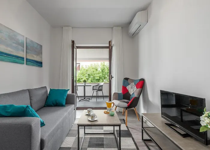 New 2020! Apartments Sanja位于波雷奇CityCentre区,房间有无限网络. 公寓铺大理石的地板.